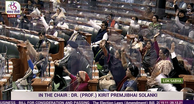#SansadUpdate:#LokSabha passes The Election Laws (Amendment) Bill, 2021#WinterSession #ElectionLaws @KirenRijiju @RijijuOffice @pib_law @ECISVEEP @SpokespersonECI @DoJ_India pic.twitter.com/QBVgFKxVGQ