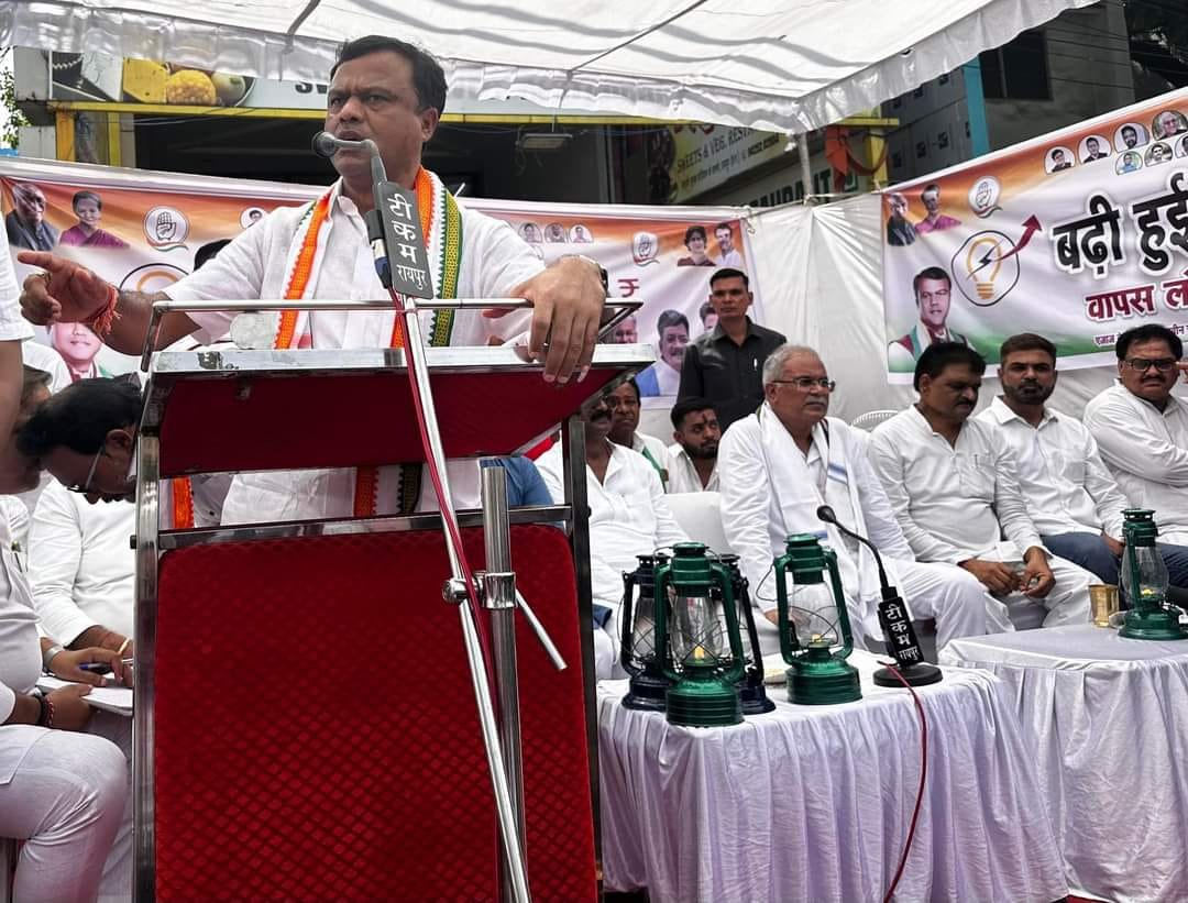 धरने को संबोधित करते हुये पूर्व मुख्यमंत्री भूपेश बघेल ने कहा कि छत्तीसगढ़ में पूर्ववर्ती कांग्रेस की सरकार के समय पूरे 5 साल सरप्लस बिजली छत्तीसगढ़ के उपभोक्ताओं को मिलता रहा अपनी आवश्यकताओं की पूर्ति के बाद तेलंगाना, गोवा, मध्यप्रदेश, पश्चिम बंगाल और उत्तर प्रदेश सहित कई राज्यो को पवार एक्सचेंज एग्रीमेंट के तहत छत्तीसगढ़ से बिजली सप्लाई की जाती थी। अब भाजपा की डबल इंजन की सरकार में अघोषित तौर पर बिजली की कटौती जारी है।वर्तमान में छत्तीसगढ़ में मांग से अधिक मेगावाट बिजली का उत्पादन करने की क्षमता है लेकिन भारतीय जनता पार्टी की साय सरकार आने के बाद से विद्युत का उत्पादन और आपूर्ती दुर्भावना पूर्वक बाधित किया जा रहा है। सर्वे के आधार पर पूर्ववर्ती कांग्रेस सरकार ने हर साल लगभग साढ़े 7 प्रतिशत की दर से बिजली के डिमांड बढ़ने का अनुमान लगाते हुए कोरबा पश्चिम में 1320 मेगावाट संयंत्र की स्थापन के लिए आधारशिला रखी थी जिसे भाजपा की सरकार आने के बाद से ठंडे बस्ते में डाल दिया गया है। डबल इंजन की सरकार में छत्तीसगढ़ की जनता बिजली, पानी जैसे मूलभूत समस्याओं से जूझ रही है। भाजपा की डबल इंजन की सरकार निजी कंपनियों पर निर्भरता बढ़ाकर जनता को लूटने का षड्यंत्र कर रही है। केन्द्र की भाजपा सरकार द्वारा लाये गए ‘‘विद्युत संशोधन 2020 विधेयक’’ को रोकना होगा अन्यथा बिजली की दरें आसमान छूने लगेगी।