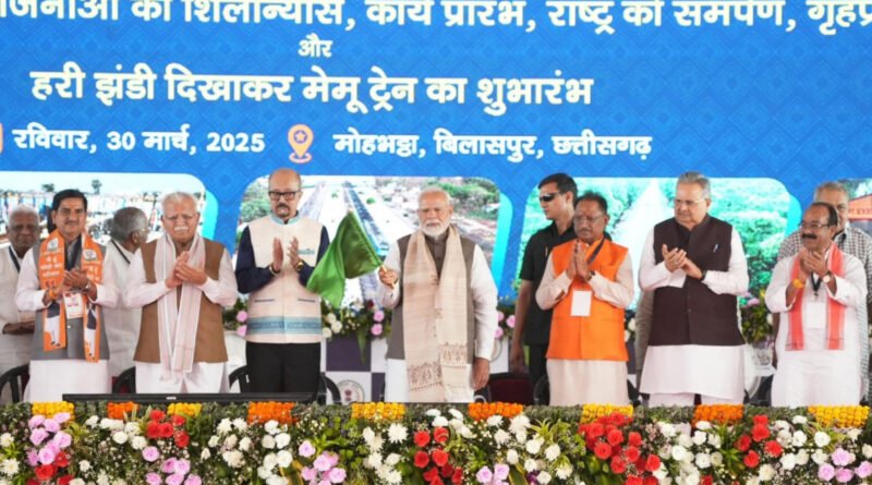 प्रधानमंत्री नरेंद्र मोदी ने आज छत्तीसगढ़ के मोहभट्ठा बिलासपुर में आयोजित कार्यक्रम के दौरान वीडियो कॉन्फ्रेंसिंग के माध्यम से हरी झंडी दिखाकर अभनपुर-रायपुर मेमू ट्रेन सेवा का शुभारंभ किया। प्रधानमंत्री मोदी ने इस अवसर पर 2,695 करोड़ रूपए की लागत से पूरी हो चुकी चार रेल परियोजनाओं को राष्ट्र को समर्पित करने के साथ ही 7 रेल परियोजनाओं की आधारशिला रखी। छत्तीसगढ़ में रेल सुविधाओं के विकास और यात्रियों को किफायती एवं सुगम परिवहन की दिशा में एक बड़ा कदम है। इन परियोजनाओं से छत्तीसगढ़ के औद्योगिक विकास को भी नई गति मिलेगी।